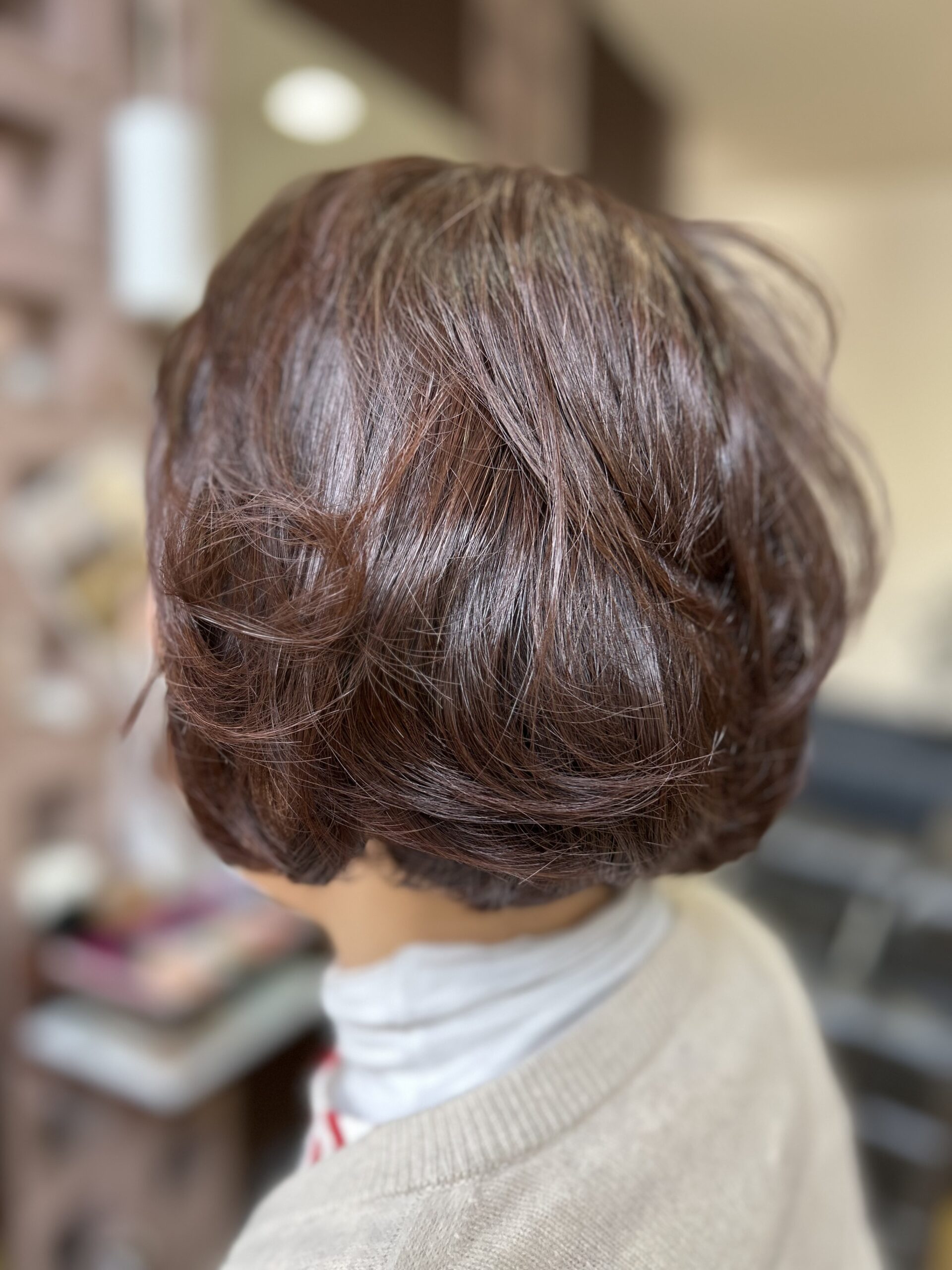 お年を召されると、およそ5年くらいで骨格の変化でウェーブスタイルの方が若見えする、ストレートの方が良いなど繰り返しているように思います。洋服と同じくヘアースタイルも色々な自分に出会えたらと思ってオリジナルパーマを学んでいます。