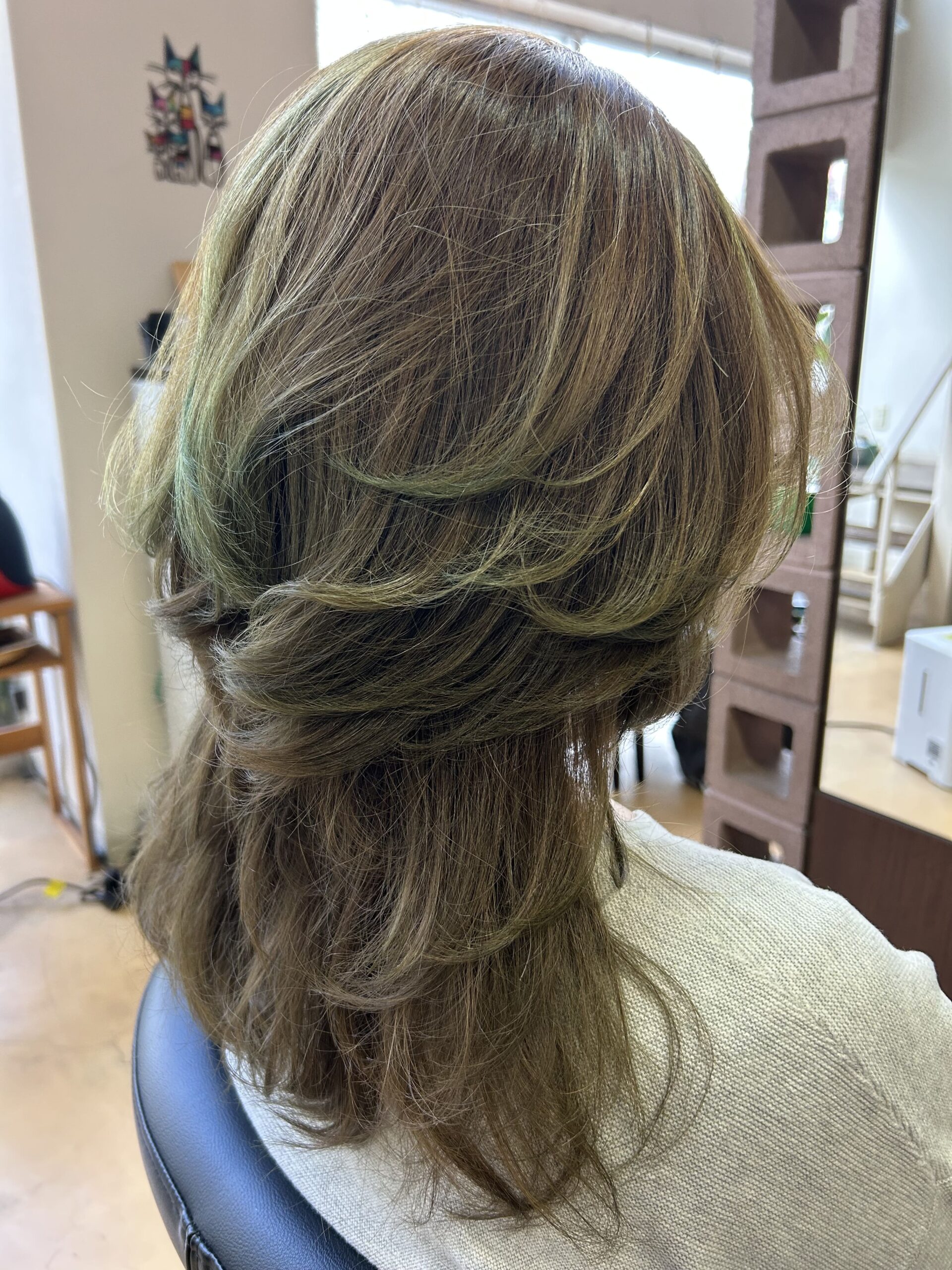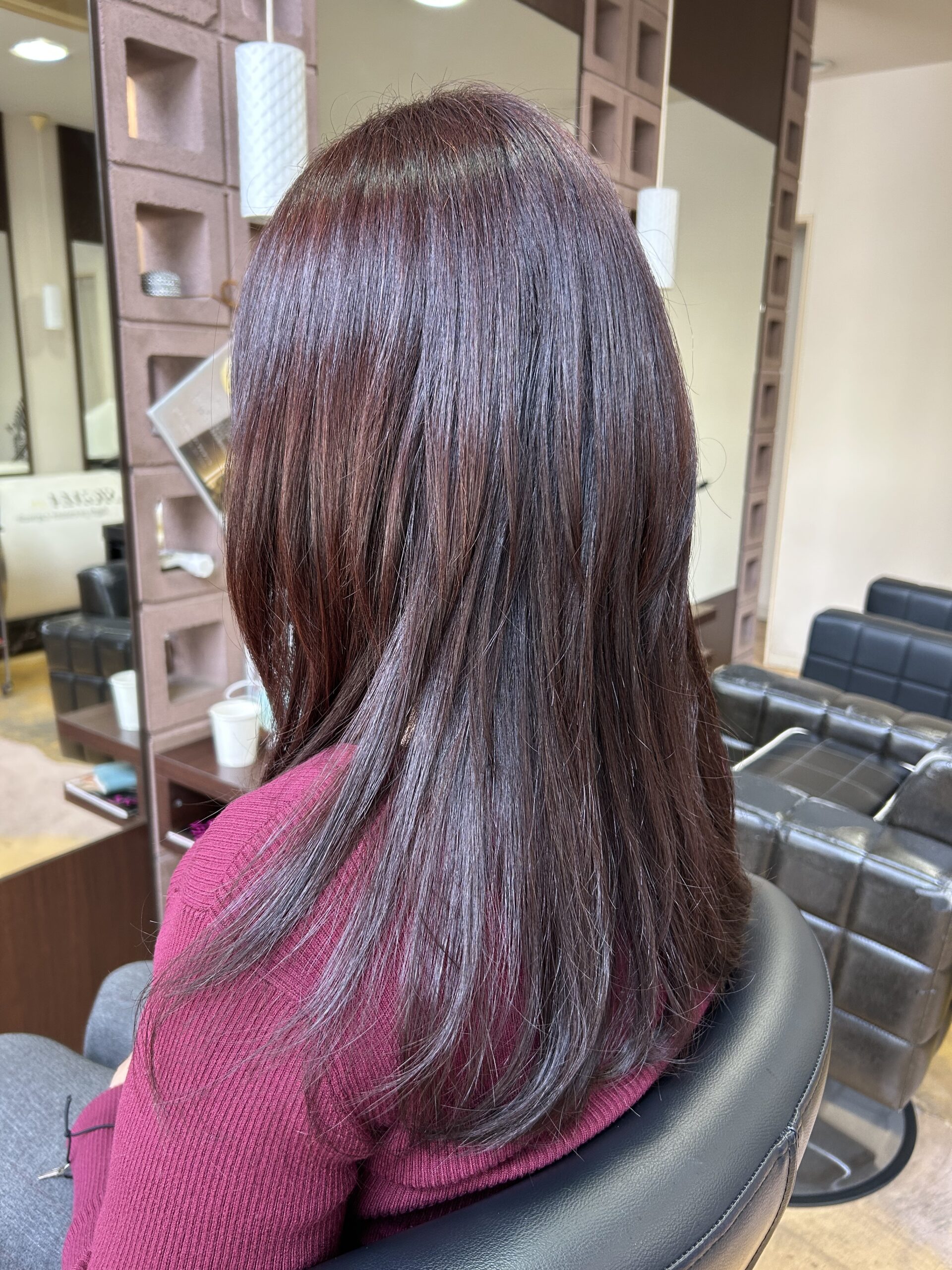 他店からご来店されるお客様から『ここのカラーの色は長持ちするね』とよく褒められます。髪の表面全体がテカっていて(艶と間違っている)お色は褪せているのに根元はあまり伸びていないカラーしてすぐに色が褪せてしまっている方をよく見かけます。